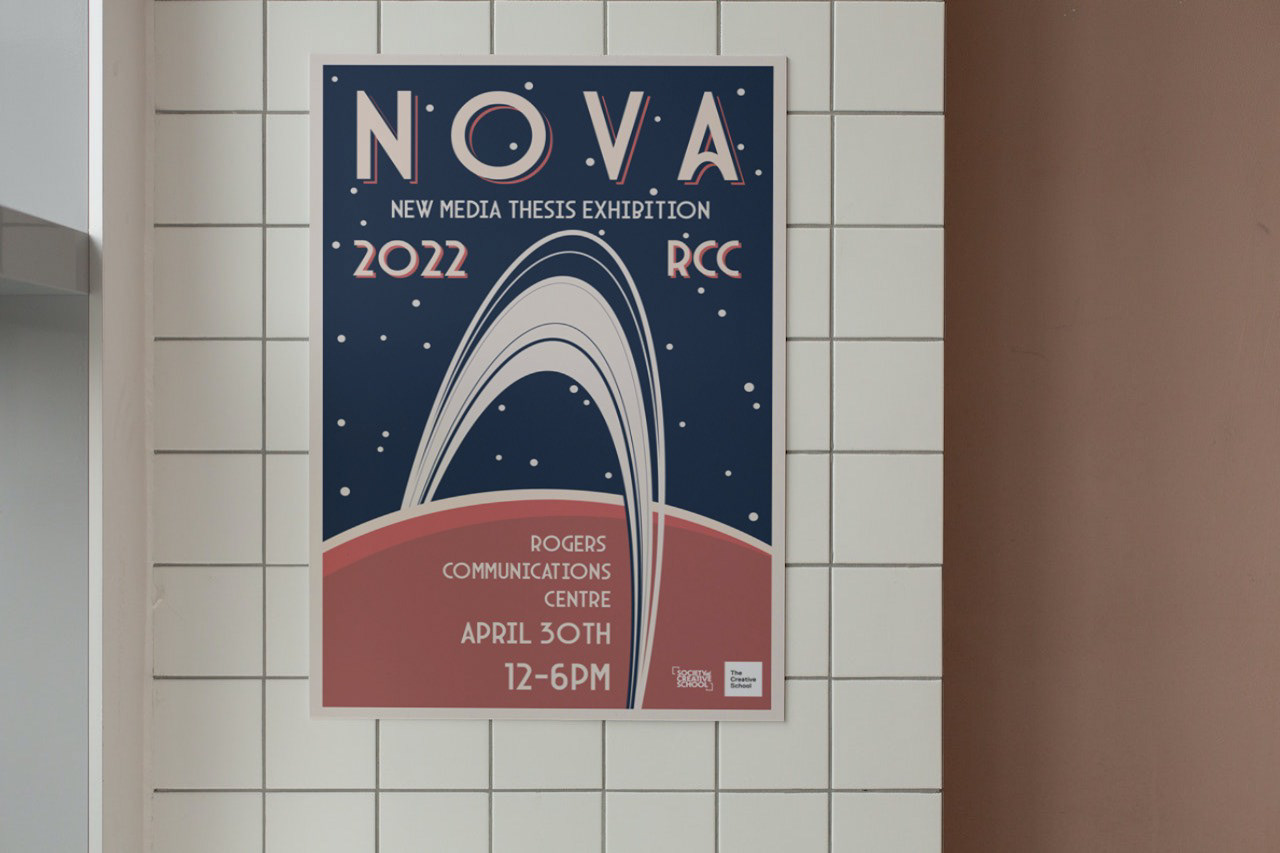 RTA New Media's NOVA class thesis showcase designs.